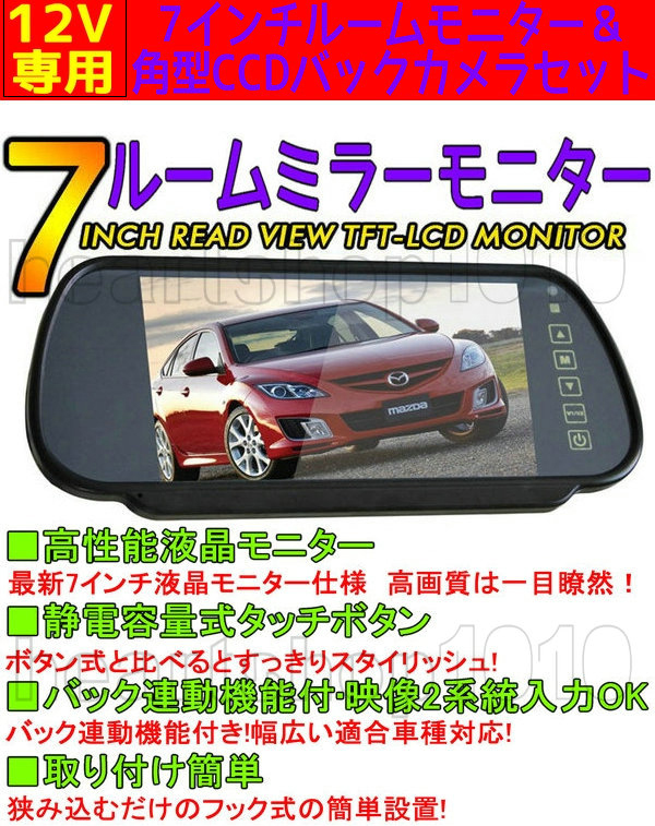 - 12v 7インチルームモニター + 角型CCDバックカメラセット