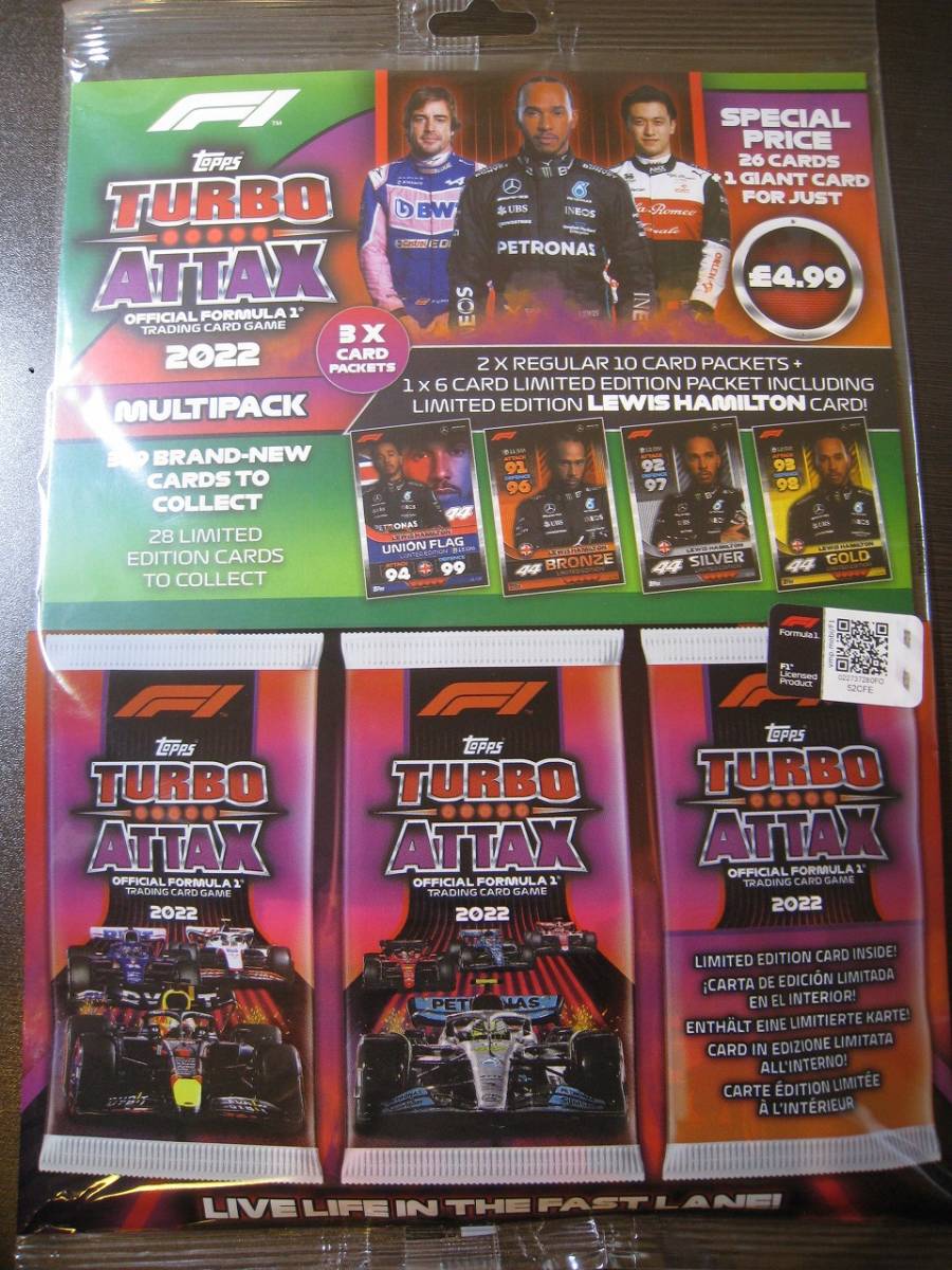 > ★Topps Turbo attax 2022 F1 トレーディングカード 3パック+ガスリー大型カード(グリーンバージョン) Z6072