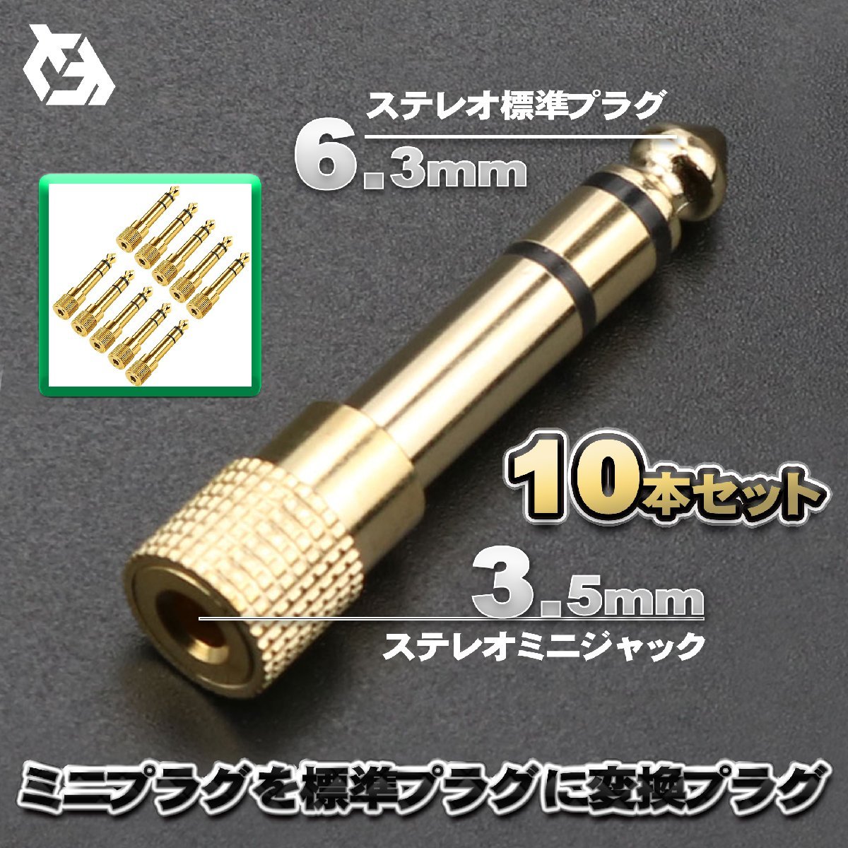 - 3.5mm ステレオ ミニプラグ (オス) - 6.3mm ステレオ 標準プラグ (メス) 金メッキ仕様 変換プラグ x10本セット