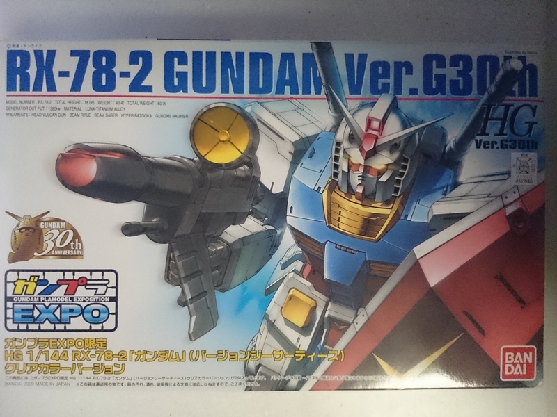 - HG 1/144 ガンダム Ver.G30th クリアカラーバージョン(ガンプラEXPO限定) [内袋未開封]