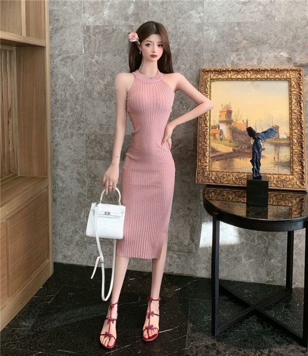 - cjx1132★新品*セクシー*エロかわ?ぴったりボディライン?良質*とろみ素材*ハイネック*スリット入*リブニット素材*ひざ丈ロングワンピース