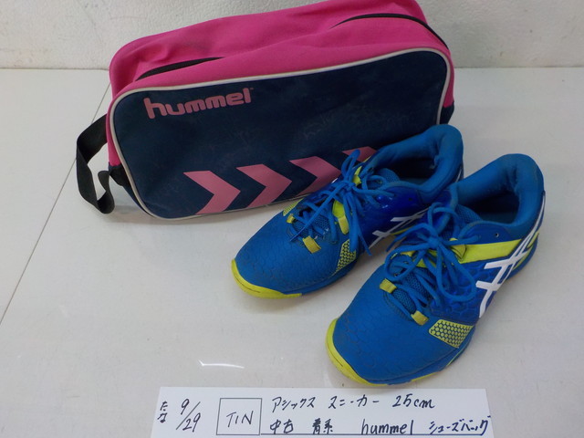 - TIN●○アシックス スニーカー 25cm 中古 青系 hummel シューズバック 4-9/29(も)