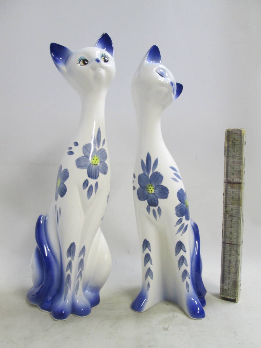 - 猫の置き物ペア 寄り添いネコ シャムネコ H47㎝ 陶器 インテリア 美品