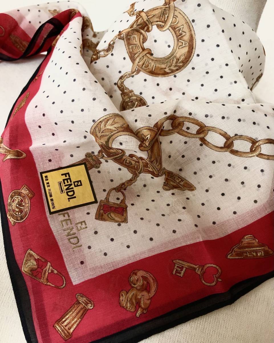 - 【レア柄】フェンディFENDI◆ハンカチミニスカーフ★膝掛け★正規品鑑定済み(1002D10せ51800)