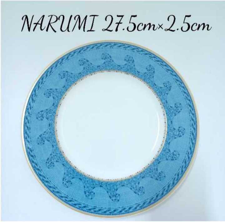- 21岩鋤)20枚 27.5cm NARUMI ナルミ ボーンチャイナ ディナープレート ブルー 波 金彩 ホテル ブランド 洋食器 プレート リム皿 大皿 221011