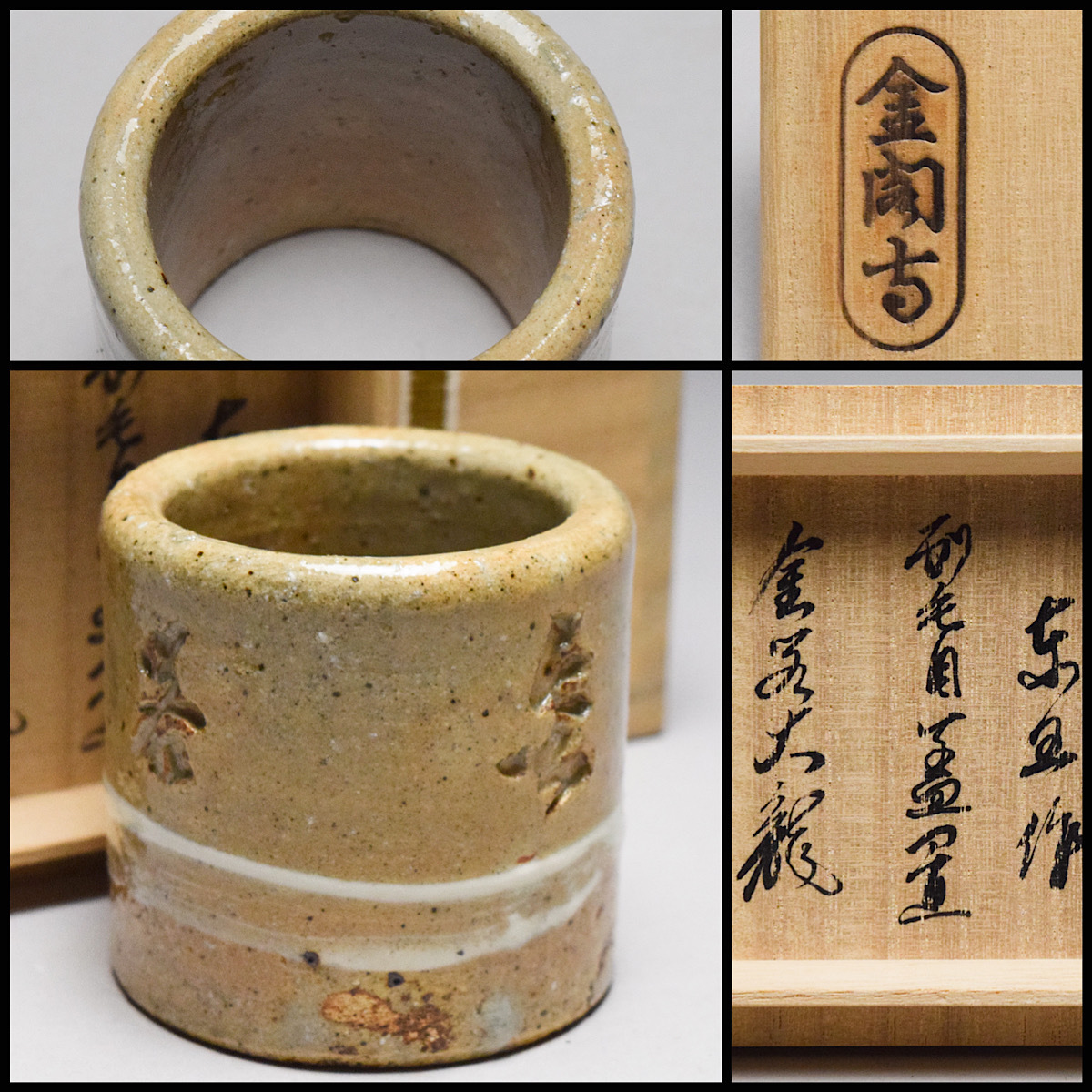 - 【八八八】小林東五 作 刷毛目 蓋置 ◆共箱 栞 茶道具 金閣大龍 金閣寺 【z-070】