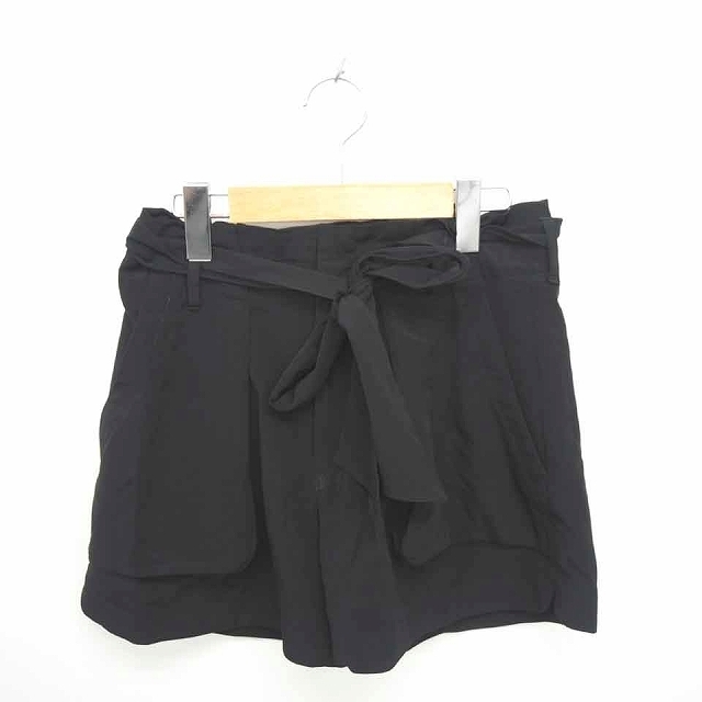 - ボルニー BORNY パンツ キュロット ショート ウエストリボン 薄手 ジップフライ M 黒 ブラック /TT8 レディース