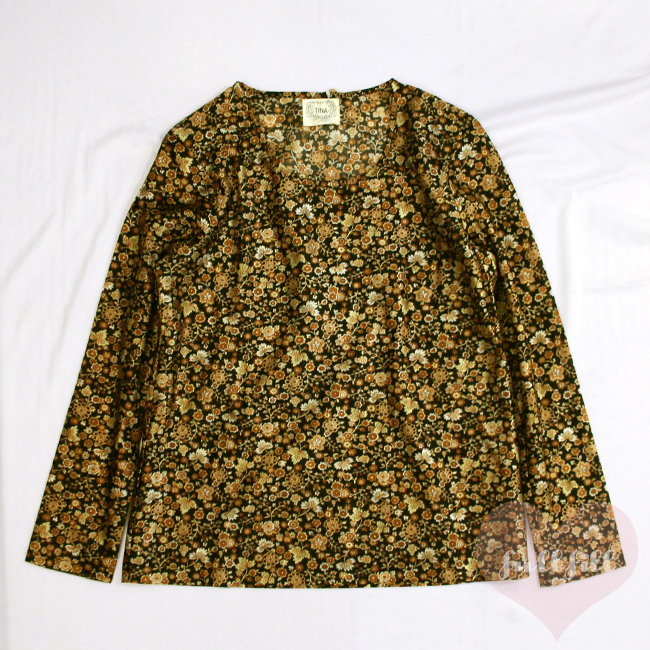 > トップス 古着 シャツ 昭和 レトロ クルーネック 花柄 長袖 ビンテージ ヴィンテージ vintage 渋可愛い ブラウン 茶色 レディース古着