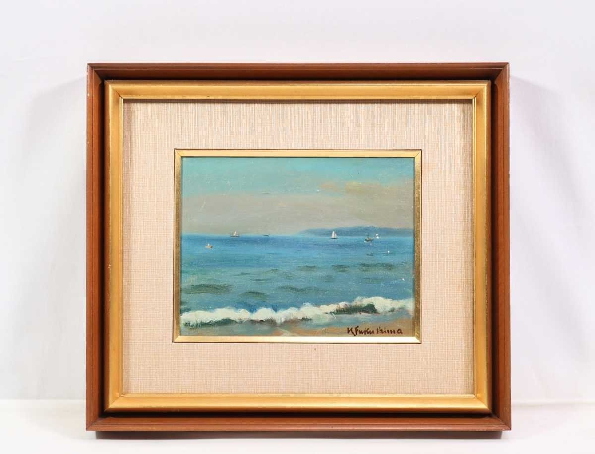 - 真作 福島金一郎 油彩「淡路島を望む」画寸 F3 岡山県出身 サロン・ドートンヌ会員 小出楢重 鍋井克之に師事 穏やかな空と瀬戸内海 5511