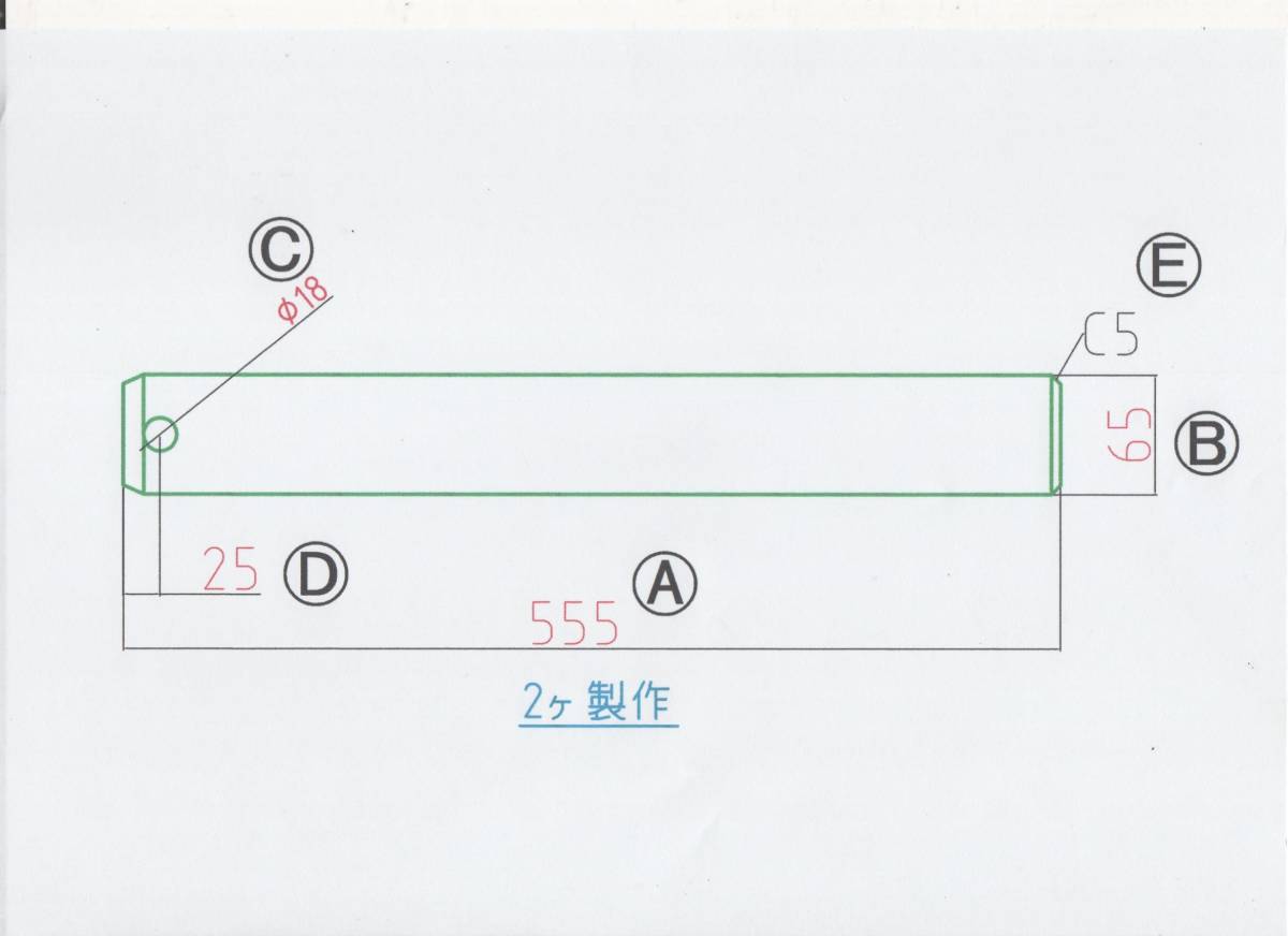 - NO 1349 Φ65用 全長555mm バケットピン 2本 1セット