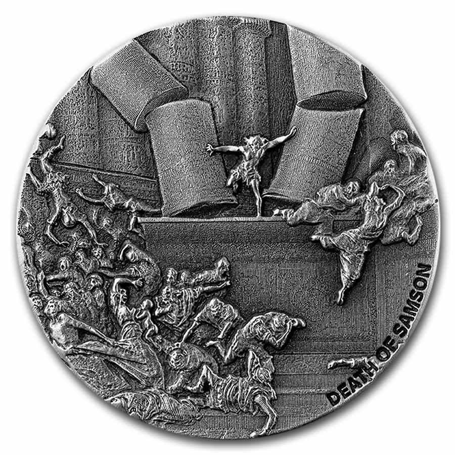 - [保証書付き] 2021年 (新品) ニウエ「聖書シリーズ・サムソンの死」純銀 2オンス アンティーク 銀貨