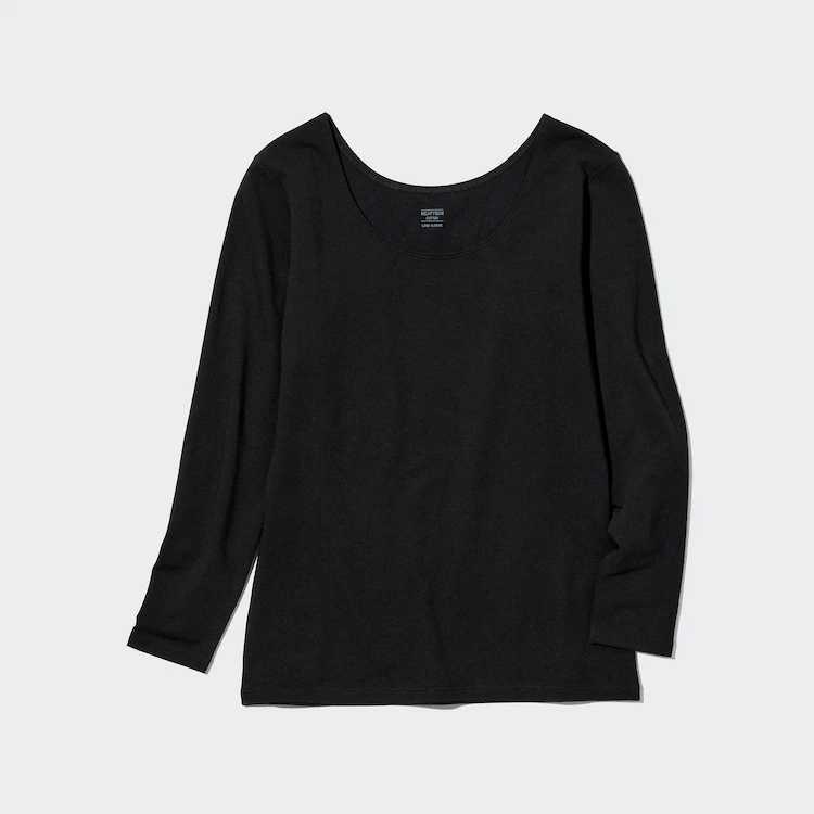 > ユニクロ 極暖 ヒートテックコットン UネックT エクストラウォーム Mサイズ ブラック WOMEN 2点セット