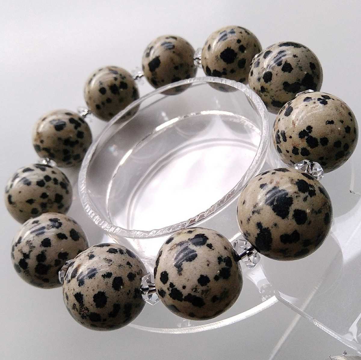 - 【大玉】ダルメシアンジャスパー 水晶 ブレスレット 18mm うずらの卵