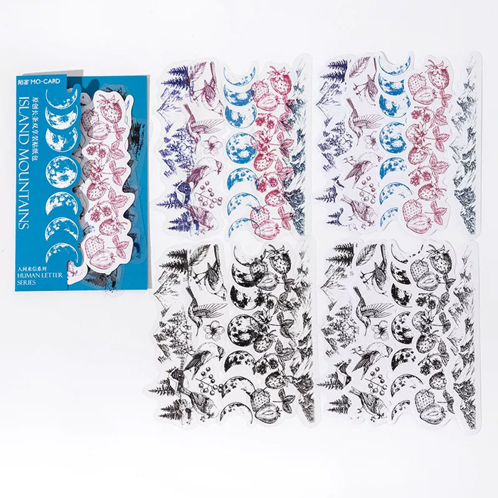 > 20枚 シール 花 蝶 月 おしゃれ アンティーク ビンテージ デコステッカー アンティーク調 コラージュ レトロ 1051-4