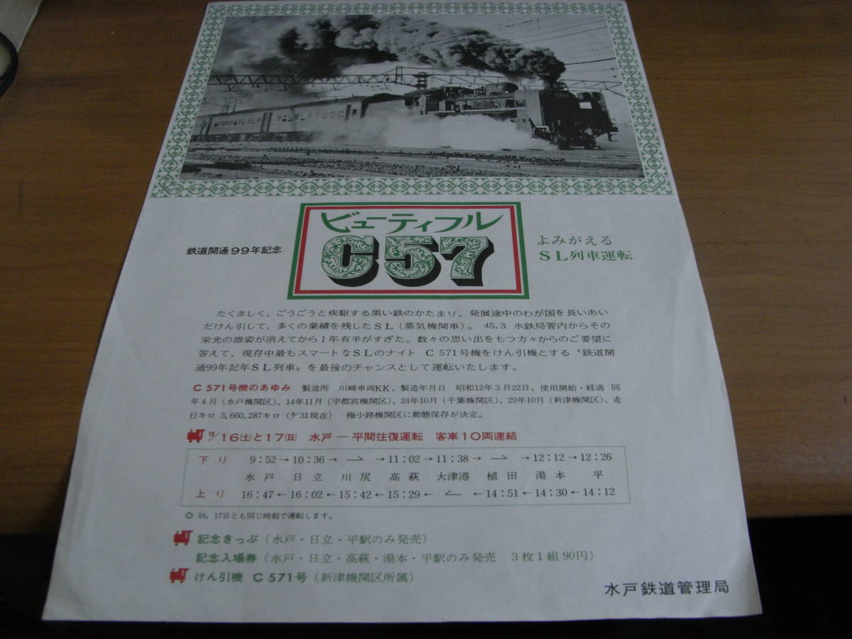 - 鉄道開通99年記念 ビューティフルC57 よみがえるSL列車運転 水戸鉄道管理局 国鉄 昭和46年