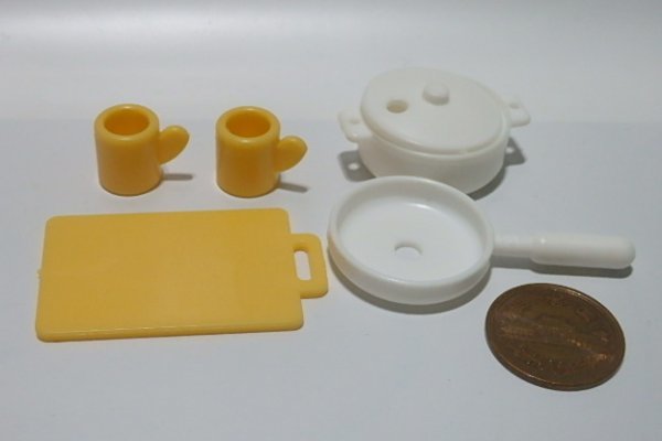 > ☆0138☆リカちゃん 小物 キッチン用品 白いフライパン・鍋 黄色いコップ☆ミニチュア ドールハウス