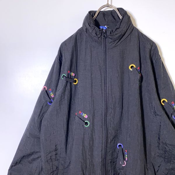 - 【鬼レア】常田大輝 着用 ジップアップ ナイロンジャケット ウインドブレーカー M~Lサイズ 黒 PARIS刺繍 コレクターズ