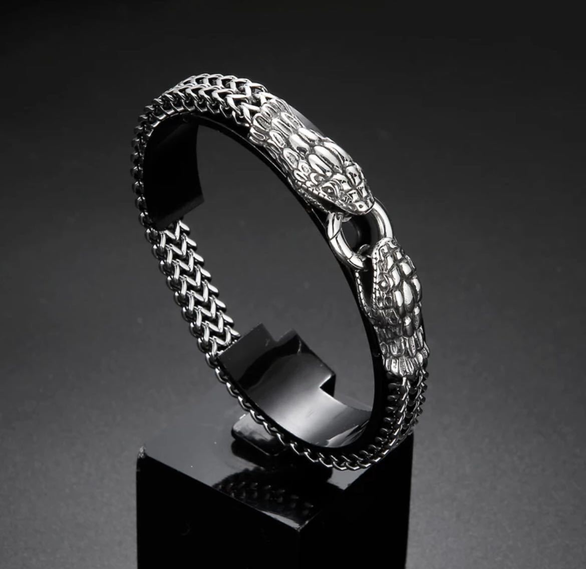 - 19cm スネークチェーンブレスレット アクセサリー ステンレス ジュエリー スネーク 蛇 ブレスレット ファッション シルバー 1771