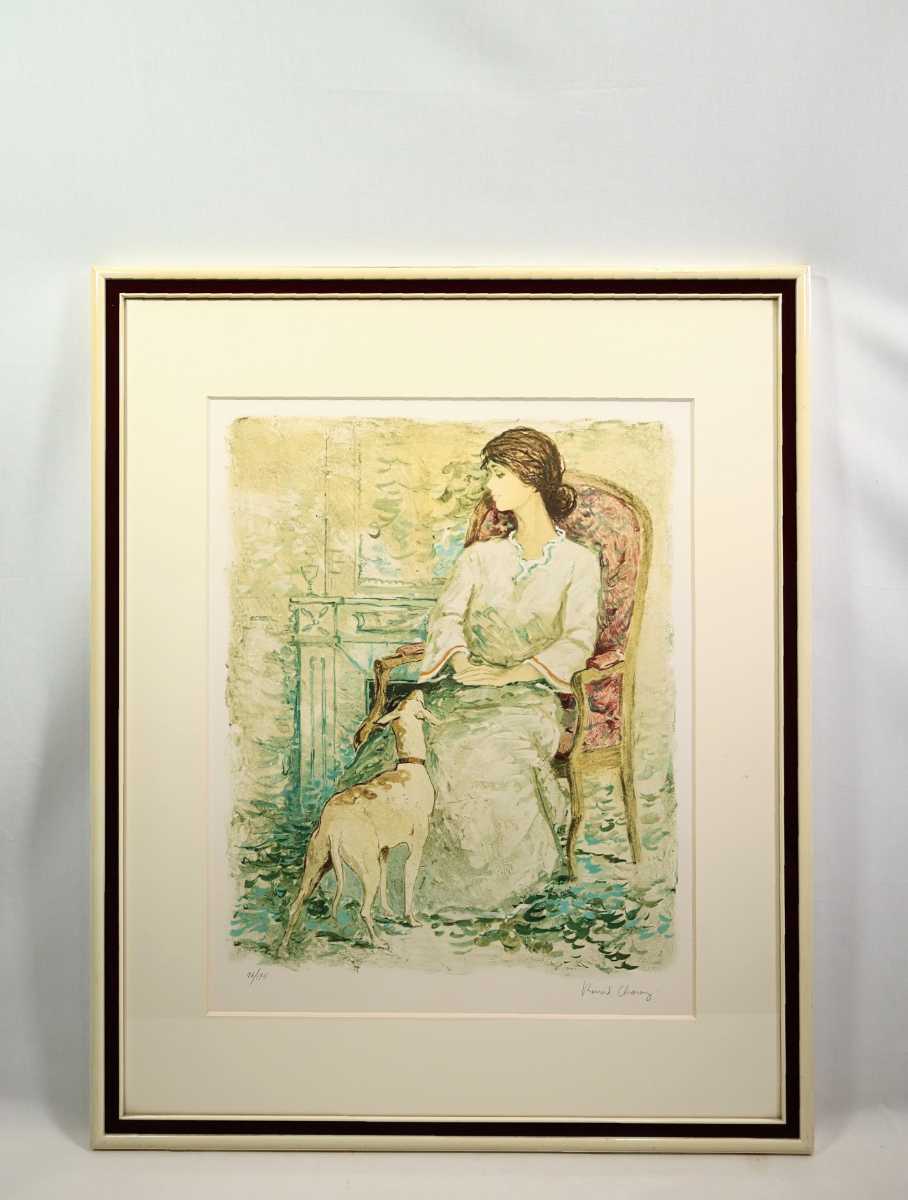 > 真作 ベルナール・シャロワ 大判リトグラフ「フランシーヌの犬」画44×54cm 仏人作家 愛くるしい表情と気品持つパリジェンヌの世界観 4490