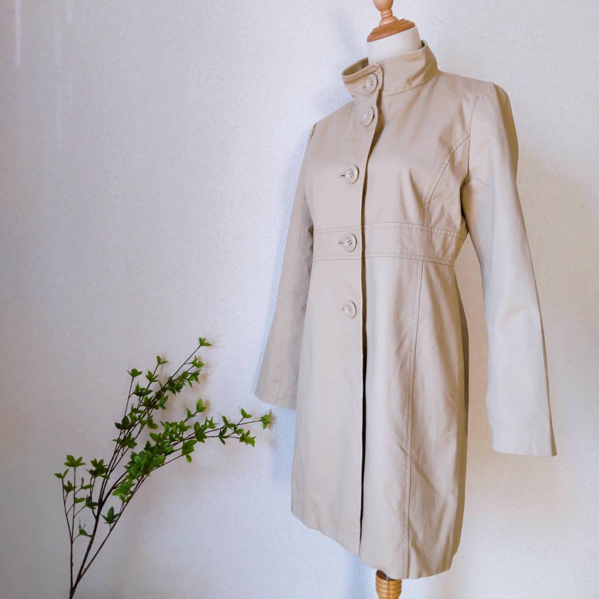 > wat19 コート AFTER ALL ワールド index ベージュ Lサイズ 裏地 総柄 可愛い おしゃれ 大きめボタン アウター ウエストマーク 定番