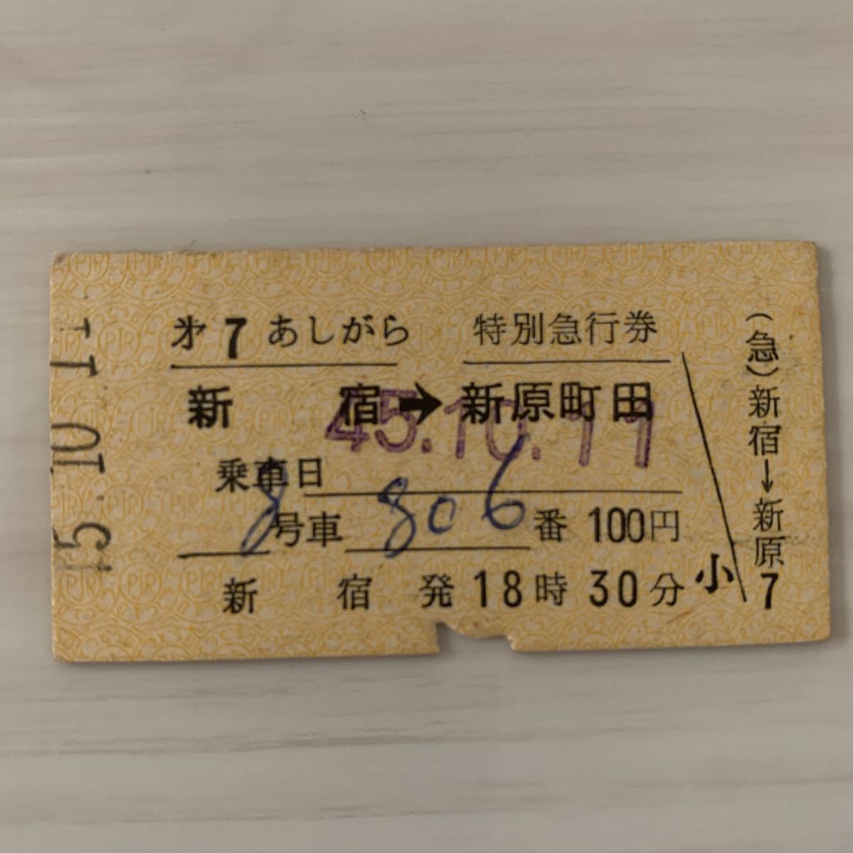 - 古い切符 小田急電鉄 特別急行券 第7 あしがら 新宿 新原町田 昭和45年10月11日
