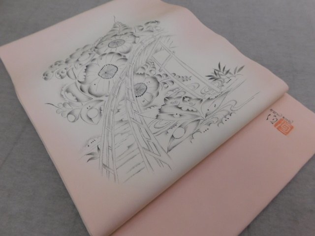- 〔楽布特選〕P20506 「大脇一心」作 西洞院辻が花塩瀬名古屋帯 bk