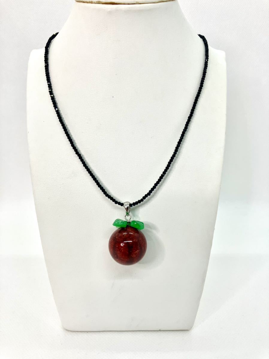 - 【新品】アフリカ珊瑚デザインネックレス*柿*かき*果物*ブラックスピネル*三月の誕生石*パワーストーン*コーラル*真円*大玉