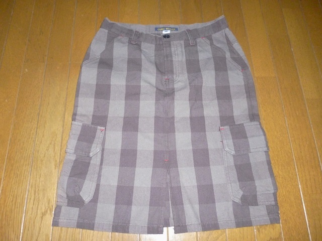 - □CUBE SUGERキューブシュガーデニム地チェックスカートMフラップポケットナチュラル□
