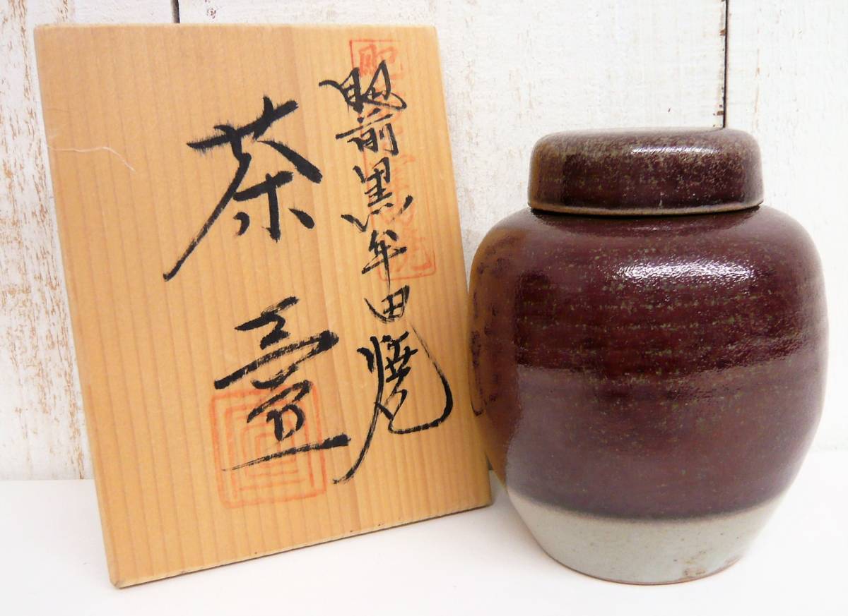 - 伝統工芸 工芸美術「肥前黒牟田焼 佐賀県 茶壷 共箱付 金継用 蓋にヒビあり 在銘 丸太宣政銘」茶器 茶道具 茶会 茶席 茶の湯 濃茶 骨董