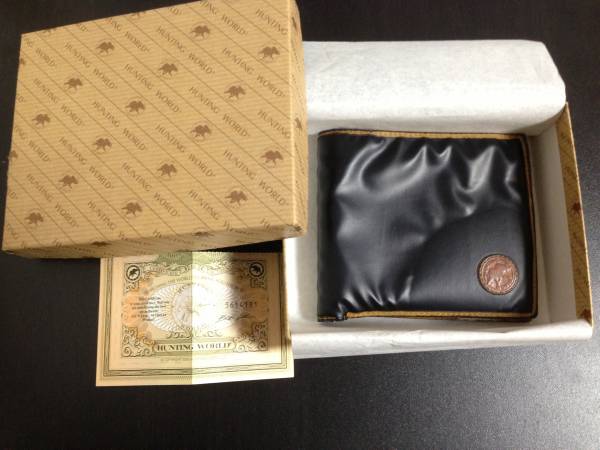> ★ハンティングワールド HUNTING WORLD 2つ折り 財布 バチュークロス 紺 箱付 ボックス