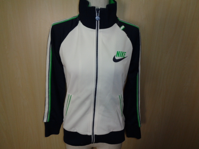 > 608◆NIKE トラックジャケット◆ナイキ S レディース ホワイト×ネイビー ジップアップ ジャージトップス 襟袖裾リブ 4K