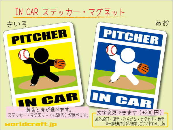 - ■_ IN CARステッカー野球ピッチャー!■投手! シール 車に☆ ステッカー/マグネット選択可能_ot(1