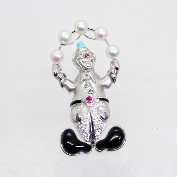 - ◎中古美品◎18金WG ピエロデザイン ブローチ兼ペンダント