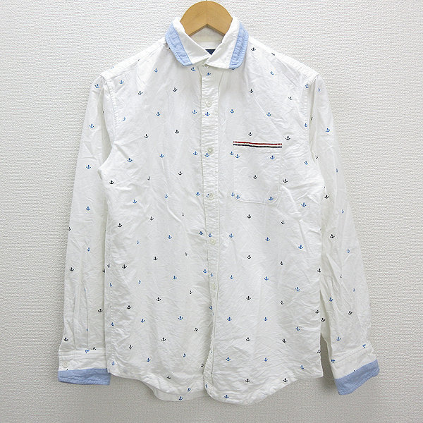 - X★ シップス/SHIPS 碇総柄刺繍 ラウンドカラー長袖シャツ【M】白MENS/20【中古】■