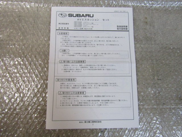 - スバル AVエスカッション セット 取扱説明書 / レガシィ全車