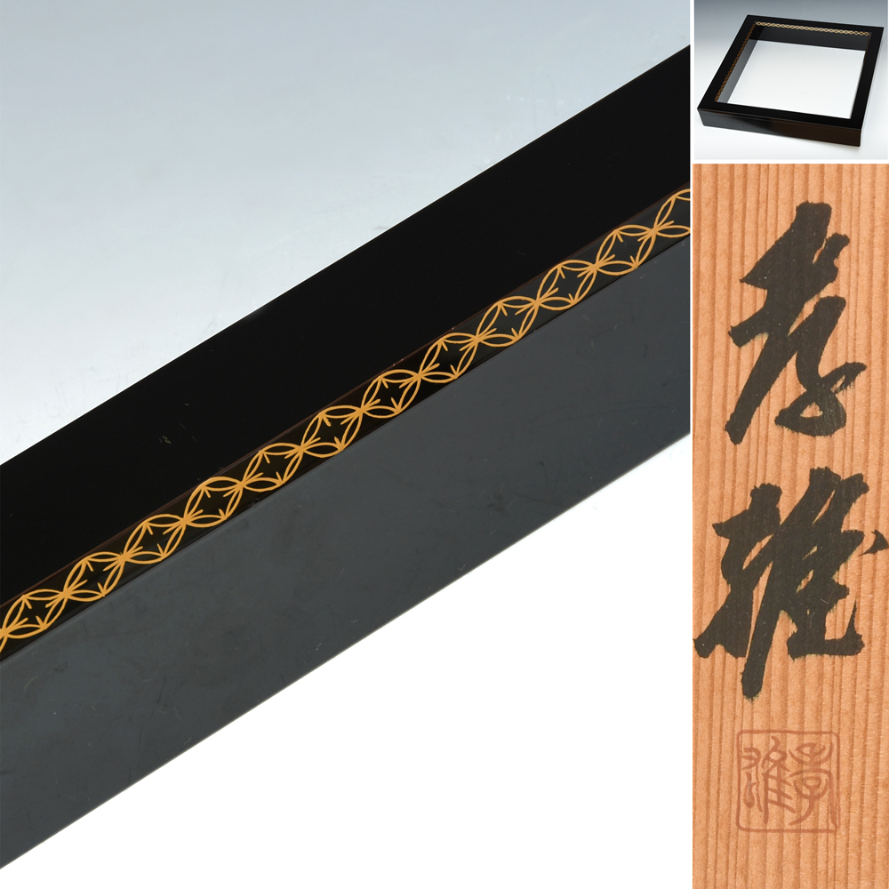 > 若島孝雄(造)輪島塗 真塗 炉縁面七宝炉縁 縦横42.5㎝ 炉用 共箱 共布 茶道具 漆工芸 漆芸 木工芸 天然木 美品 日本工芸会会員 z4262o