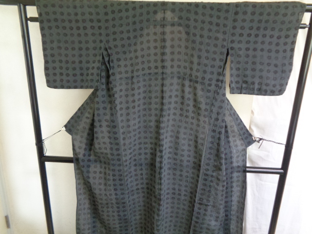 - C383-80 麻 縮 強撚糸 単衣 裄61センチ 身丈146センチ アンティーク