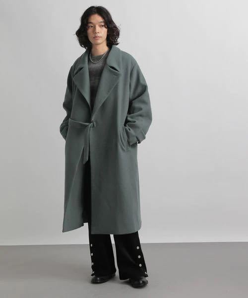 - L 未使用品 HARE ハレ WOOL タイロッケンコート ベルト ロングコート 青緑系 ウール