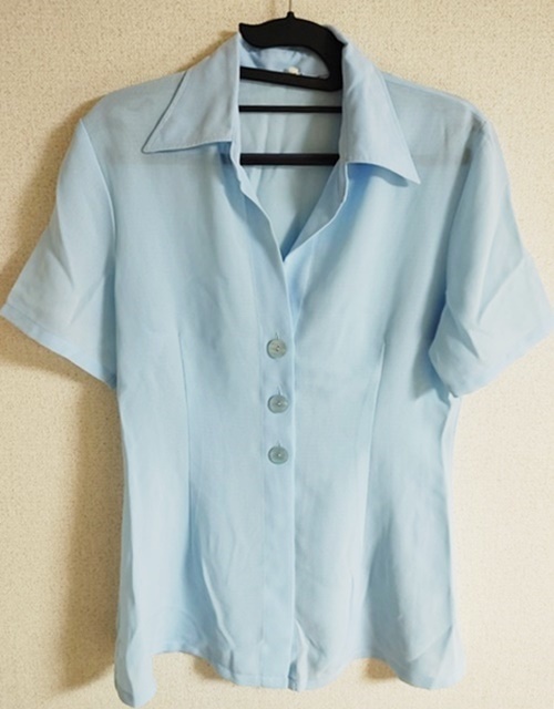 - Lサイズ White room 半袖 ブラウス 開襟 水色