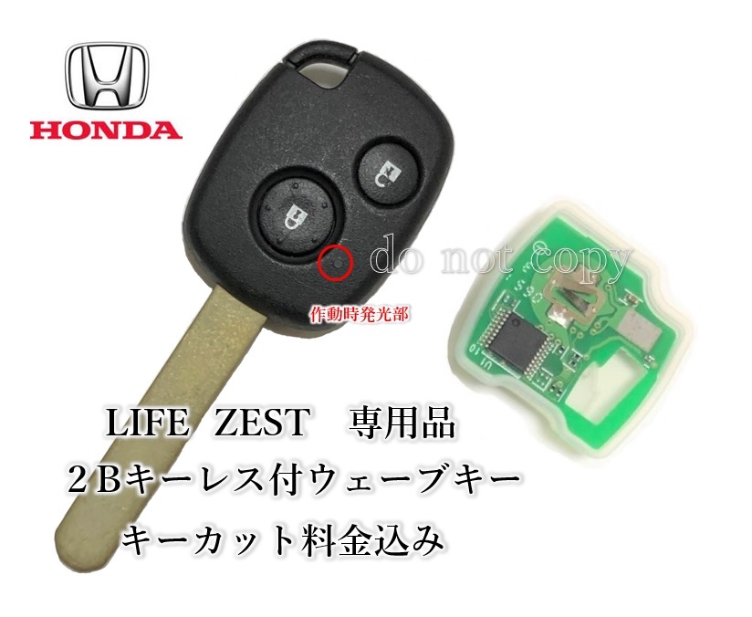 > □ホンダ□LIFE ZEST 純正流用 2Bキーレス付 『N刻印』 ウェーブキー 合鍵 作製 メインキー・スペアーキー ZEST LIFE