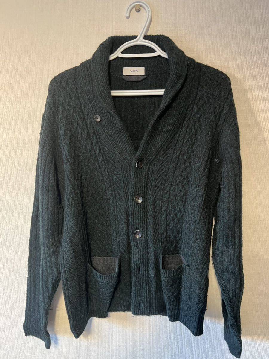 - SHIPS ニットカーディガン ダークグリーン