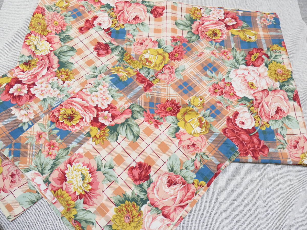 > 美品4点 布団カバーシングル+大判枕カバー2枚普通サイズ枕カバー1枚 きれいで上品なバラ柄 両面柄違いがおしゃれ!