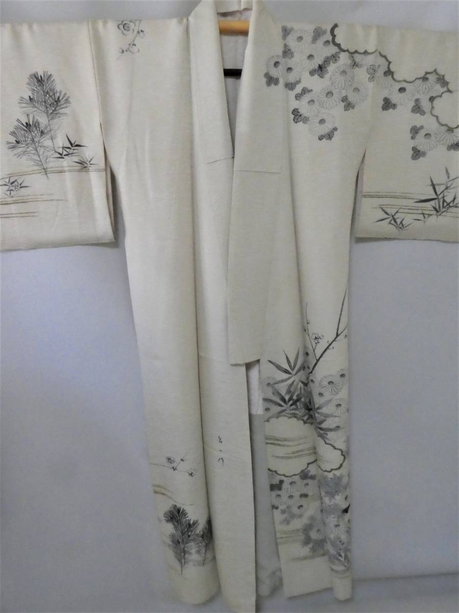 - (269)着物 和装 クリーム ベージュ 作家 梅 松