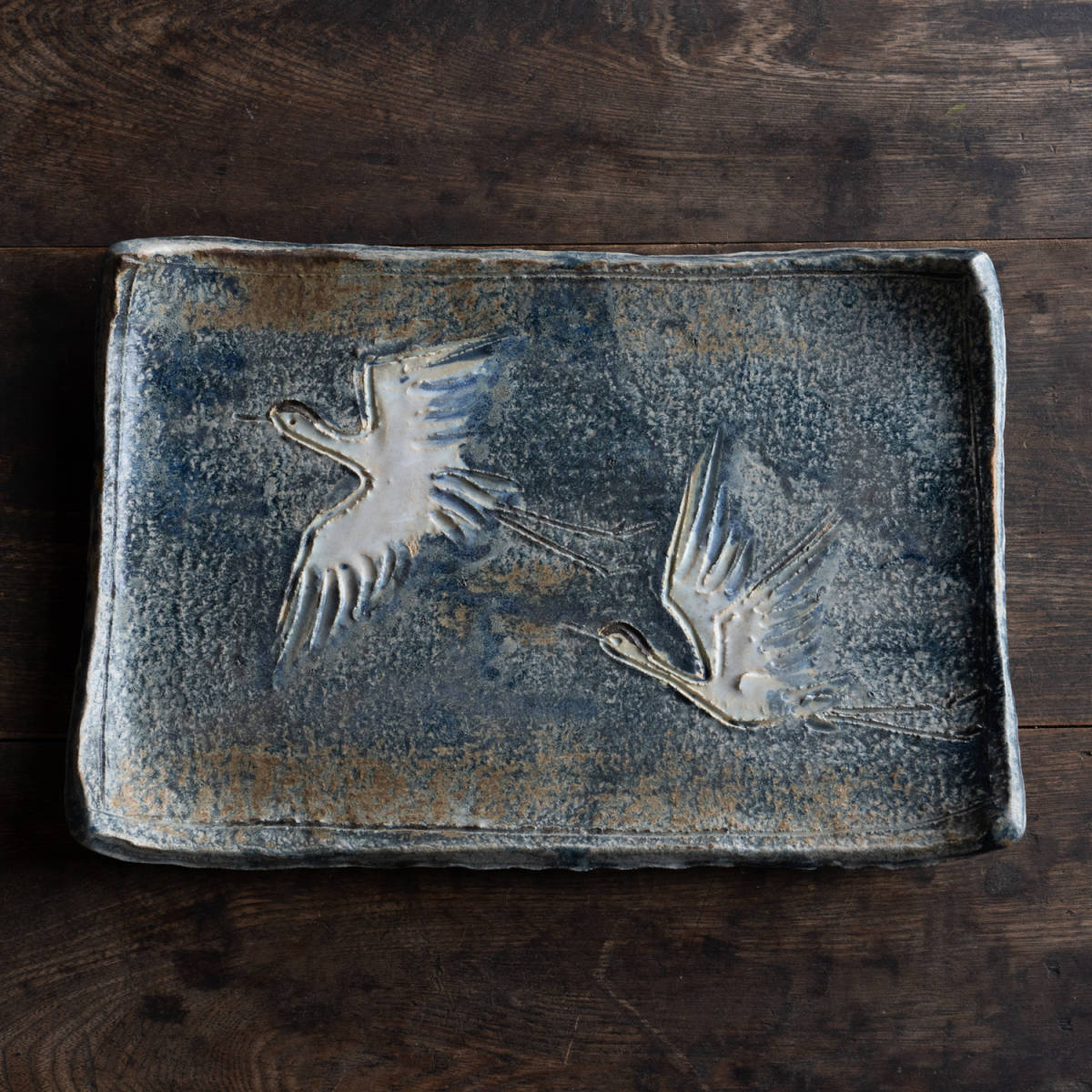 - 鶴の描かれた陶器皿 飾り皿 置物 オブジェ 食器 飾り