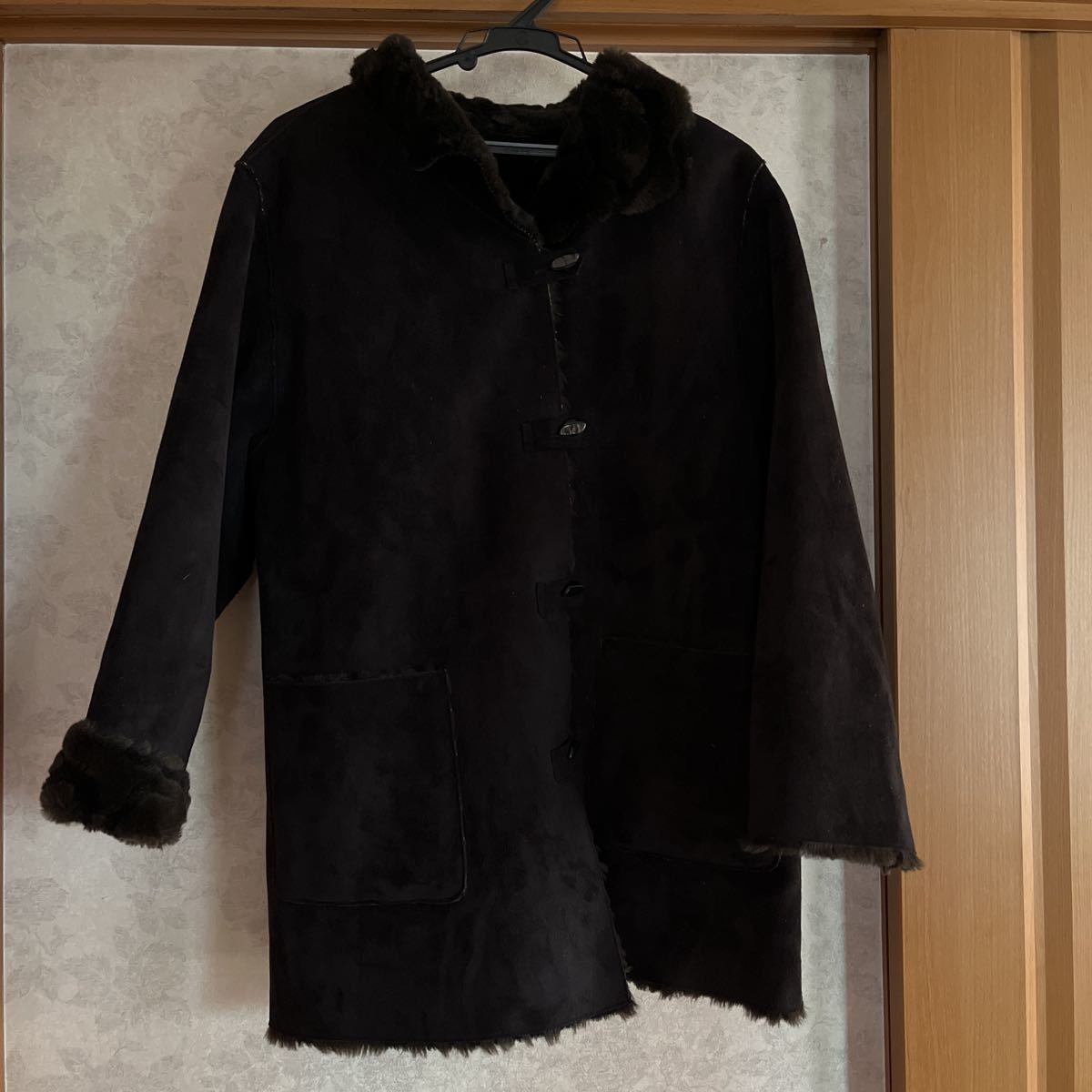 > ★★MISSEL★★フェイクムートンコート 黒ブラック L 表地バックスキン風ポリエステル 裏地ムートン風アクリル こげちゃ ストーン風ボタン