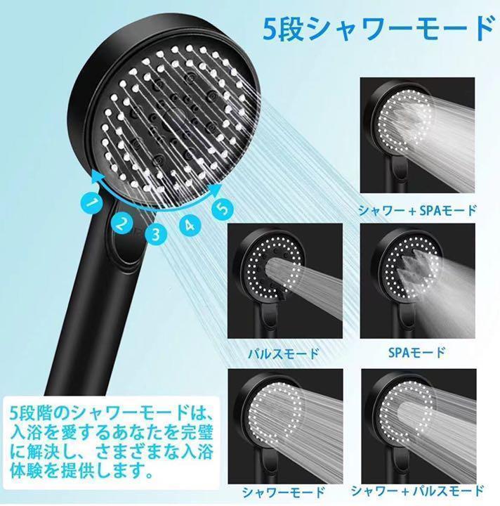 - 26 シャワーヘッド 節水 工具不要 増圧 水量調節機能 スパ ブラック 黒