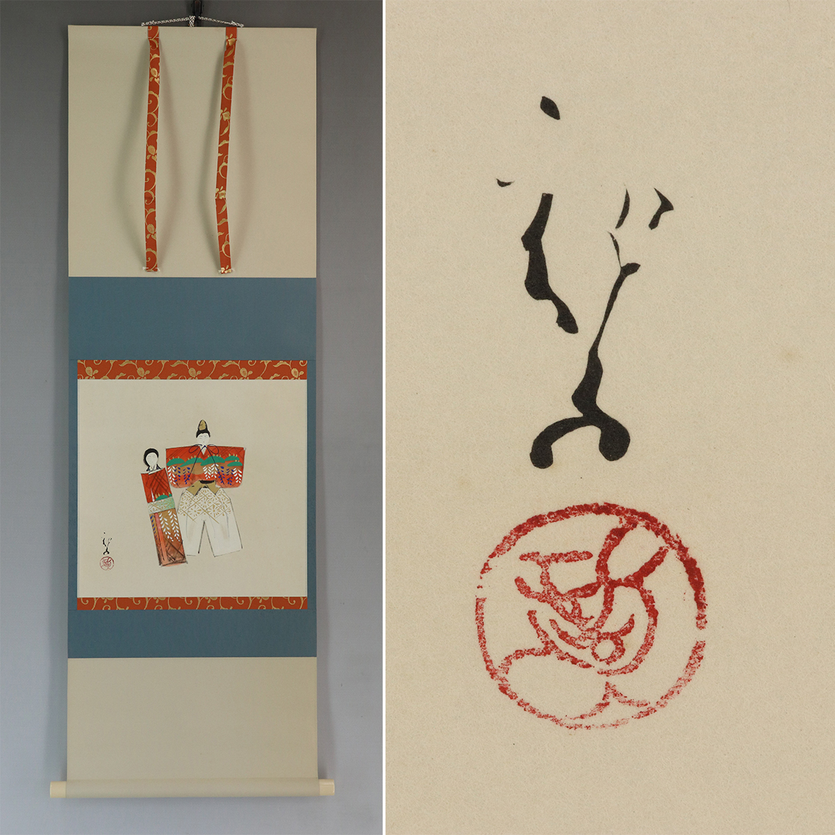 - 【巧芸】川端龍子【雛】◆紙本◆合箱◆掛軸 u09133
