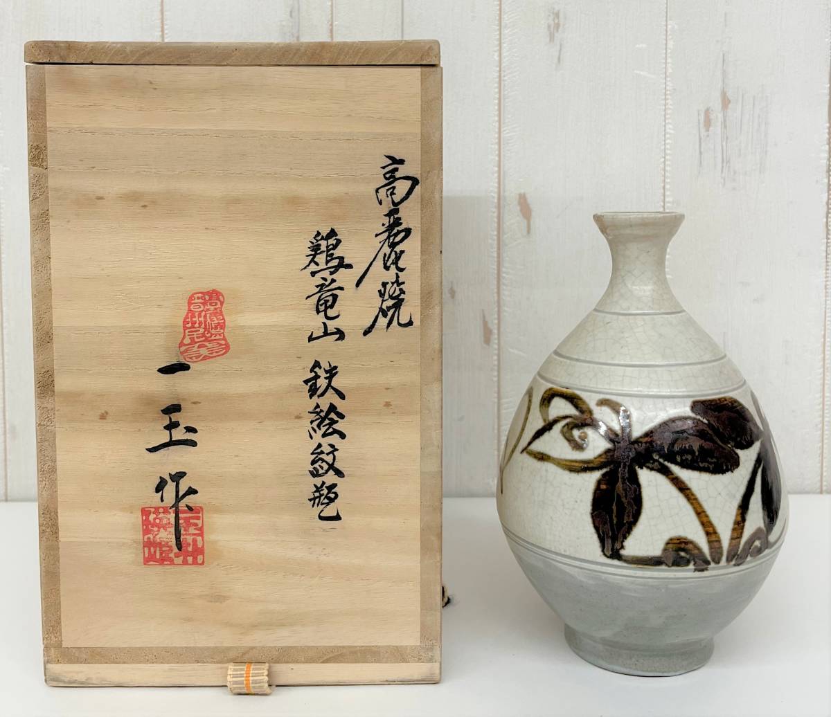 > 伝統工芸 工芸品 工芸美術 *高麗焼 朴瑛姫 一玉 作 鶏竜山 鉄絵紋瓶 晋州民窯 花入 花生 花瓶 一輪挿 茶道 茶道具 茶室 和室 陶器 陶芸