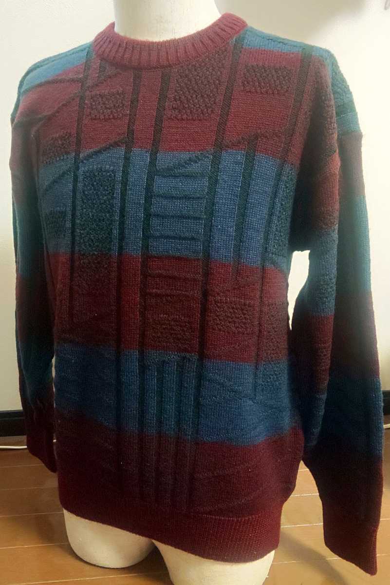 - 90's程度良好古着 GRAND BIRDIE 立体ニット ブルー ワインレッド ヴィンテージ レトロ