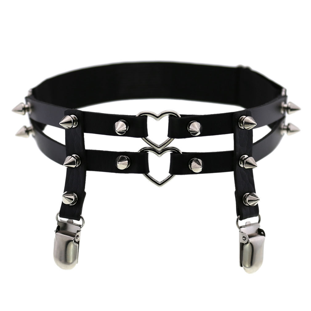 - 送料無料 レッグガーターリング ダブルスタッズプチハート&サスペンダーハーネス ガードル スマアク